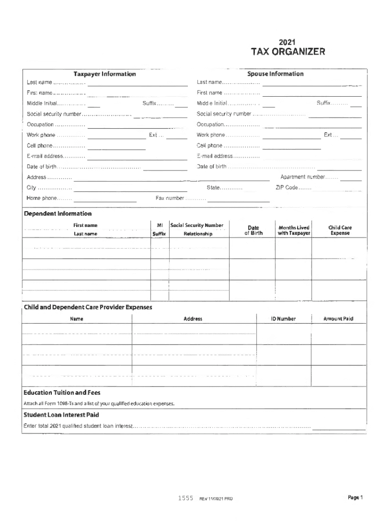 Review all information for accuracy and completeness before submitting the tax organizer.