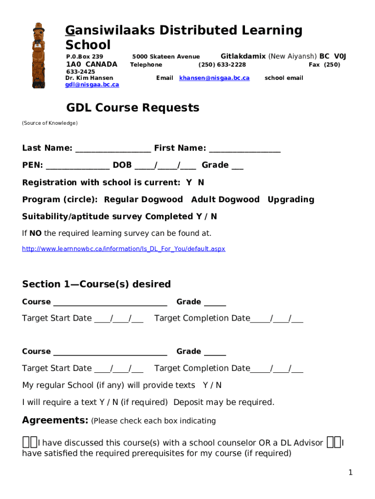 Instructions for the form Nisga'a Elementary Secondary School Reports