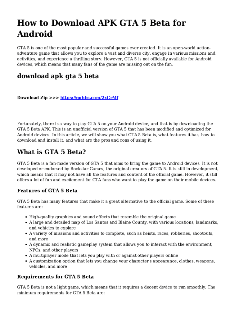 Fill out your gta 6 apk download online with pdfFiller!