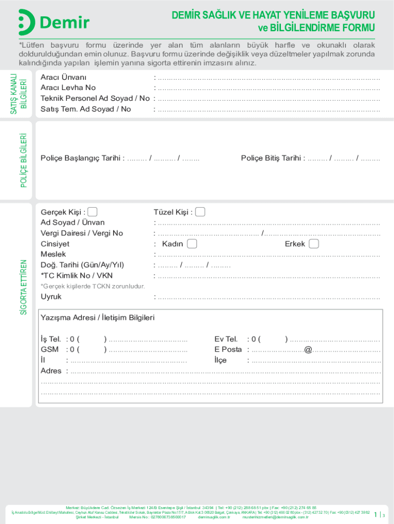 DEMR SALIK VE HAYAT YENLEME BAVURU