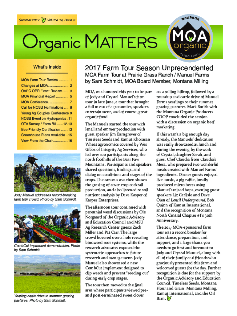 Summer 2017Volume 14, Issue 3Organic MATTERS Whats Inside MOA Farm Tour Review............ 1 Changes at MOA....................... 2 OAEC OPR Event Review........ 3 MOA Financial Report...............