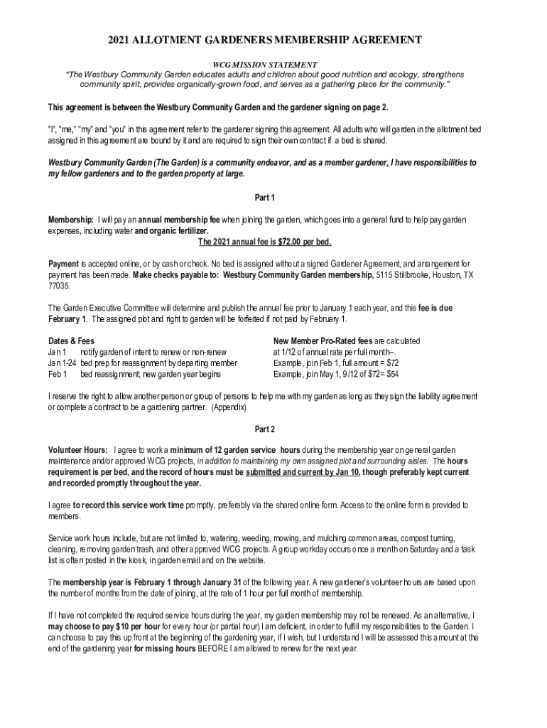 2021 ALLOTMENT GARDENERS MEMBERSHIP AGREEMENT