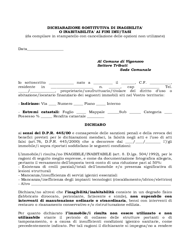 DICHIARAZIONE SOSTITUTIVA DI INAGIBILITA\'