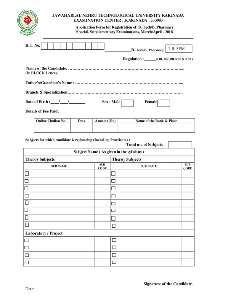 Application Form for Registration of B. Tech/B. Pharmacy