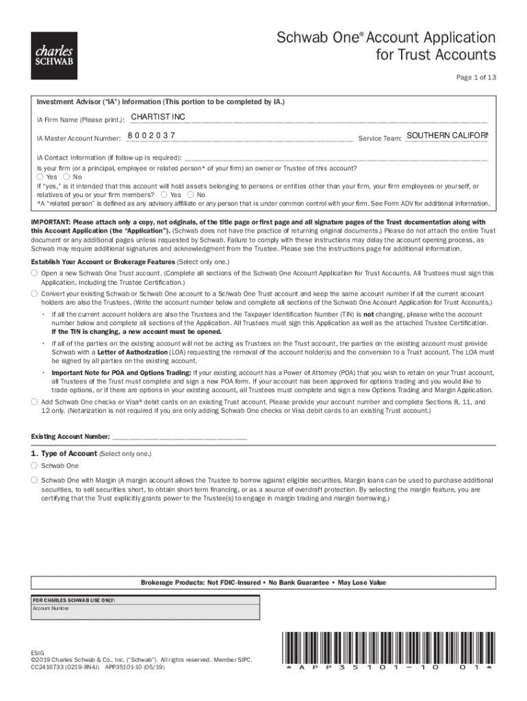 Instructions to Open a Schwab One Trust AccountIMPORTANT: Please attach only a copy, not originals, of the title page or first page and all signature pages of the Trust documentation along with this