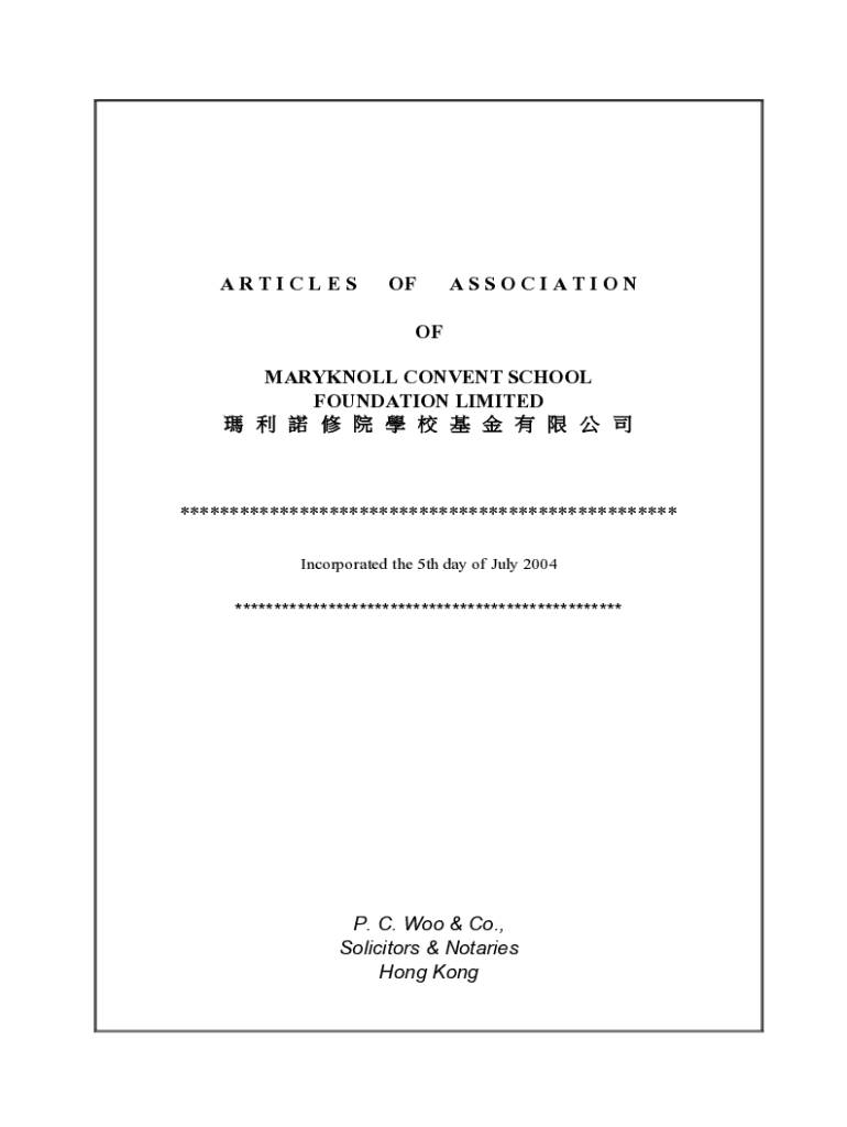 ARTICLESOFASSOCIATIONOF MARYKNOLL CONVENT SCHOOL FOUNDATION LIMITED ************************************************** Incorporated the 5th day of July 2004**************************************************P.