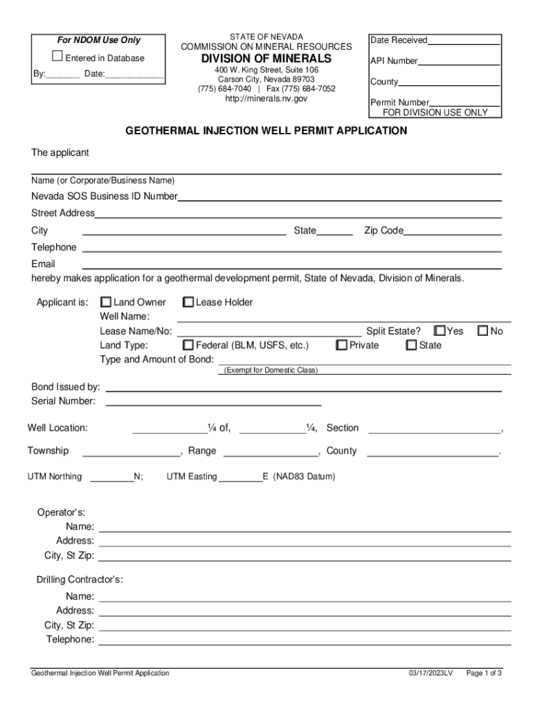 STATE OF NEVADAFor NDOM Use OnlyCOMMISSION ON MINERAL RESOURCESDIVISION OF MINERALSEntered in DatabaseAPI Number400 W. King Street, Suite 106 Carson City, Nevada 89703 (775) 6847040 | Fax (775) 6847052By:___