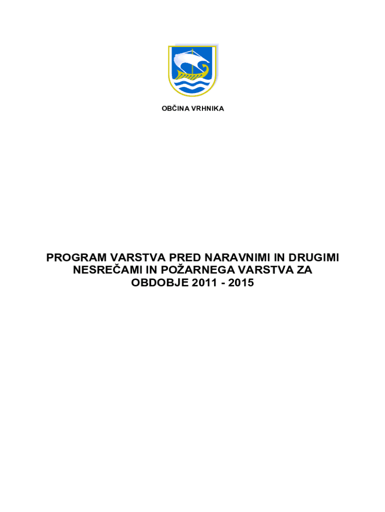 OBINA VRHNIKAPROGRAM VARSTVA PRED NARAVNIMI IN DRUGIMI NESREAMI IN POARNEGA VARSTVA ZA OBDOBJE 2011 2015Traka cesta 1,1360 VRHNIKA tel.: 01/7555420, fax: 01/75553103 epota: cz.obcina@vrhnika.siOBINA
