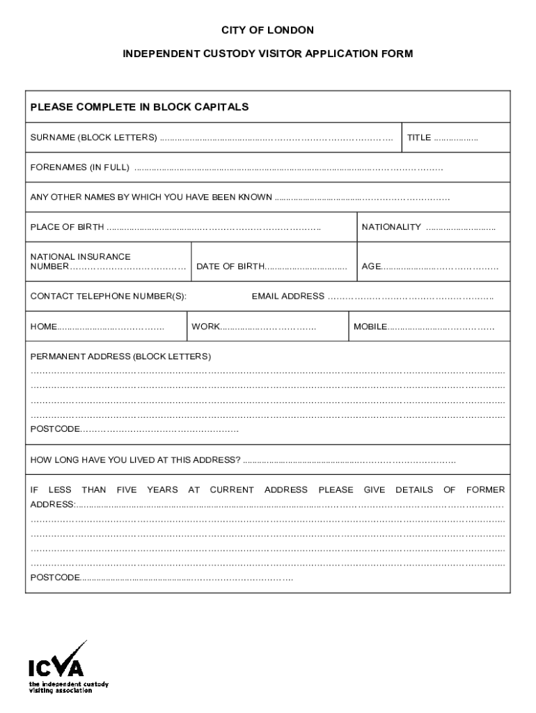INDEPENDENT CUSTODY VISITOR APPLICATION FORMPLEASE COMPLETE IN BLOCK CAPITALS