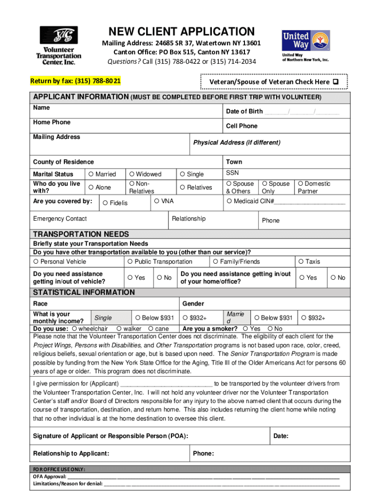 NEW CLIENT APPLICATION
