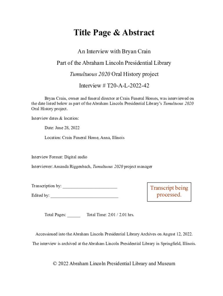 Get the free The Abraham Lincoln Presidential Library offers an oral ...