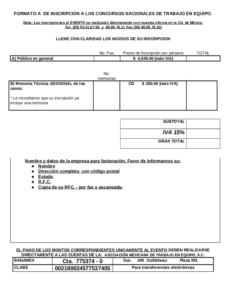 Instructions for the form ATO ADE INSCRIPCION A LOS CONCURSOS NACIONALES DE TRABAJO EN EQUIPO