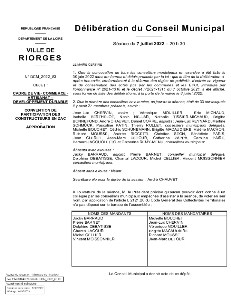 REPUBLIQUE FRANCAISE ___Dlibration du Conseil Municipal ___DEPARTEMENT DE LA LOIRE ___Sance du 7 juillet 2022 20 h 30VILLE DERIORGES ___ N DCM_2022_83 OBJET : CADRE DE VIE COMMERCE ARTISANAT DEVELOPPEMENT