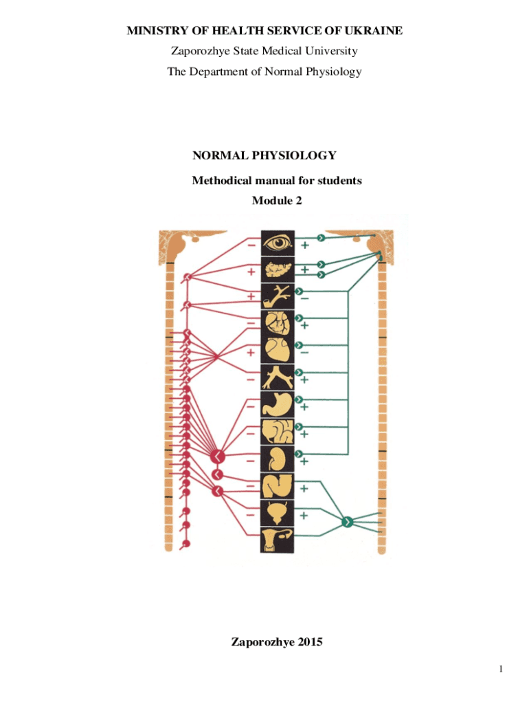 MINISTRY OF HEALTH SERVICE OF UKRAINE Zaporozhye State Medical University The Department of Normal PhysiologyNORMAL PHYSIOLOGY Methodical manual for students Module 2Zaporozhye 2015 1:612(075.8)111