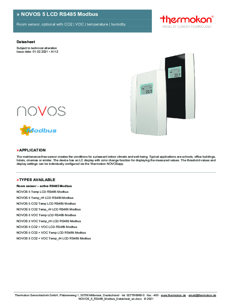 Get the free NOVOS 5 VOC temp white LCD RS485 Modbus