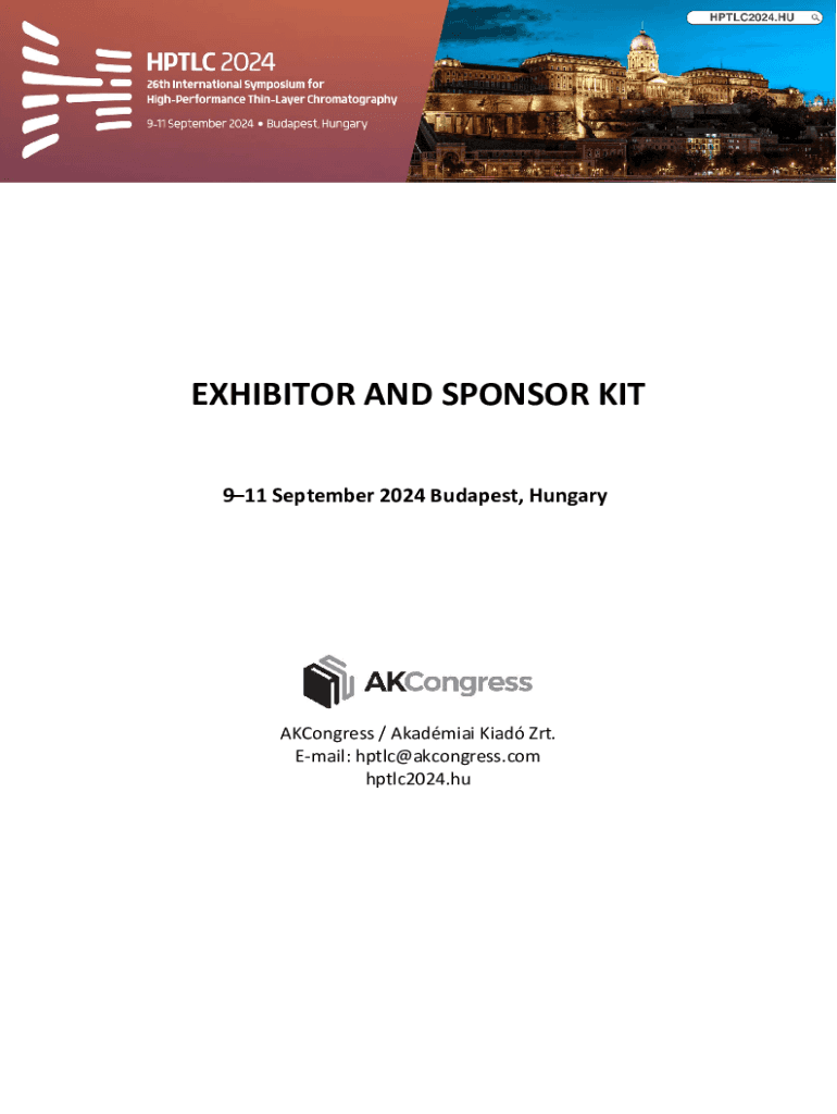 EXHIBITOR AND SPONSOR KIT 911 September 2024 Budapest, HungaryAKCongress / Akadmiai Kiad Zrt. Email: hptlc@akcongress.com hptlc2024.huConference Chair gnes MRICZ Plant Protection Institute, Centre