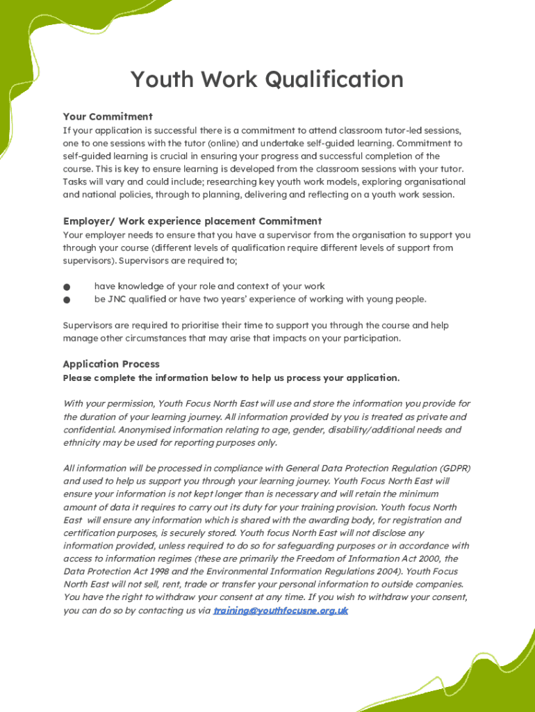 Instructions for the National Youth Agency Learner Application/Initial ... form