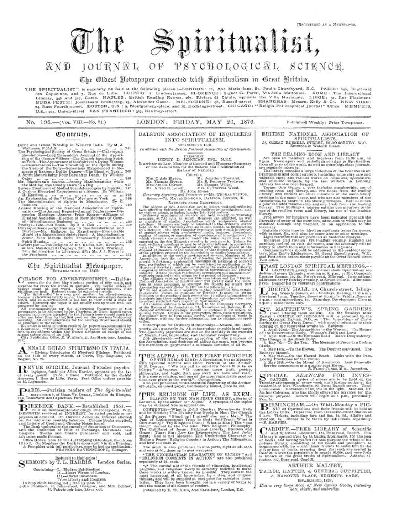 [BkihsteeetiSKas aNewspaper,joUfW&L oF PfYdftoiodiCaL $ di $ KM tfHircsiimmcdei fodlj Sfirihralismffittaiittrihhr.THE SPIRITUALIST is regularly on Sale at the following places LONDON : n, Ave Marialane,