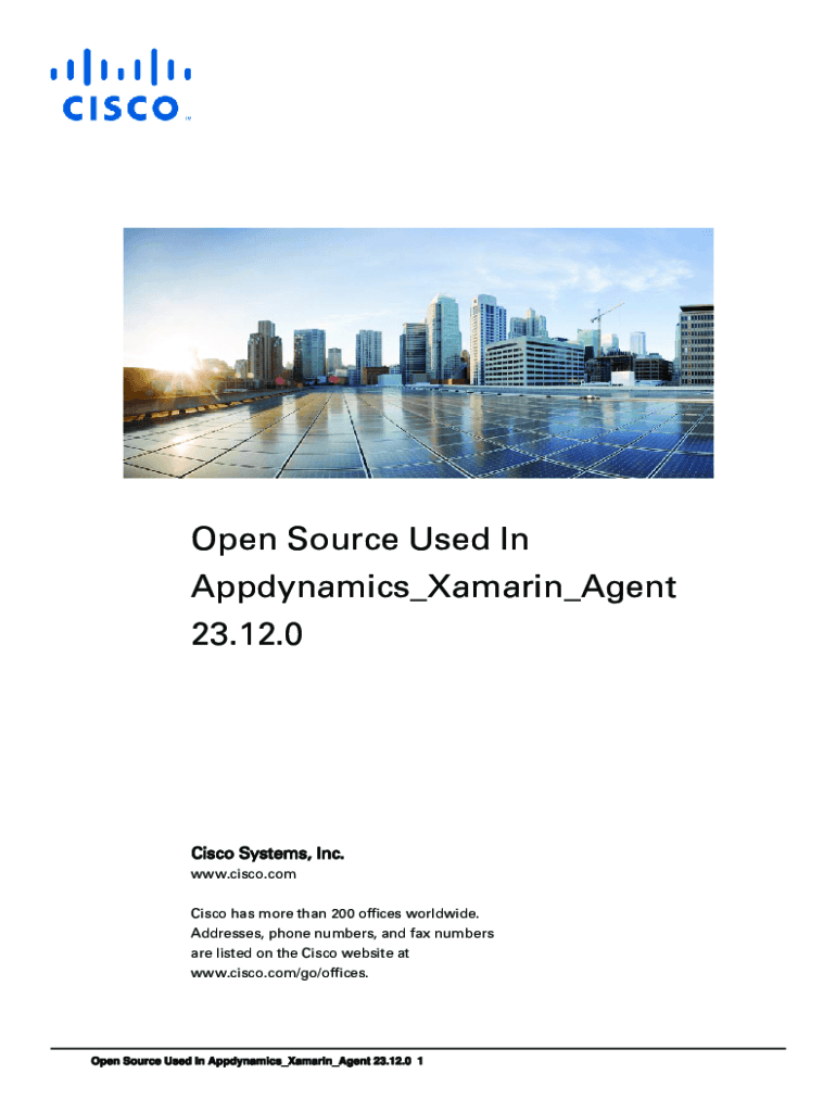 Open Source Used In Appdynamics_Xamarin_Agent 23.12.0Cisco Systems, Inc. www.cisco.com Cisco has more than 200 offices worldwide. Addresses, phone numbers, and fax numbers are listed on the Cisco
