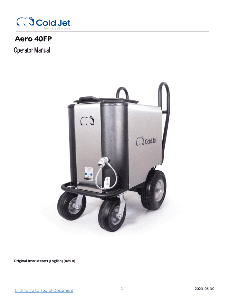 Operator ManualOriginal Instructions [English] (Rev B)Click to go to Top of Document120230630Copyright 2023 Cold Jet, LLC All rights reserved. Printed in the USA. Due to continued product development