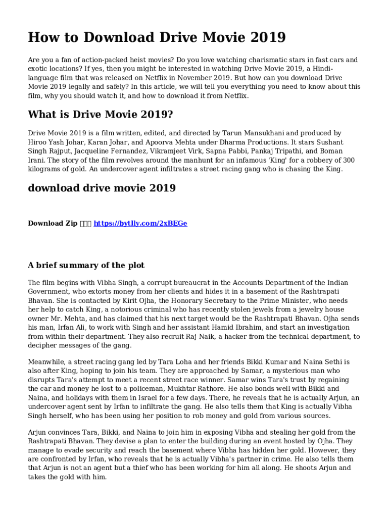 How to Download Drive Movie 2019 Are you a fan of actionpacked heist movies? Do you love watching charismatic stars in fast cars and exotic locations? If yes, then you might be interested in watching