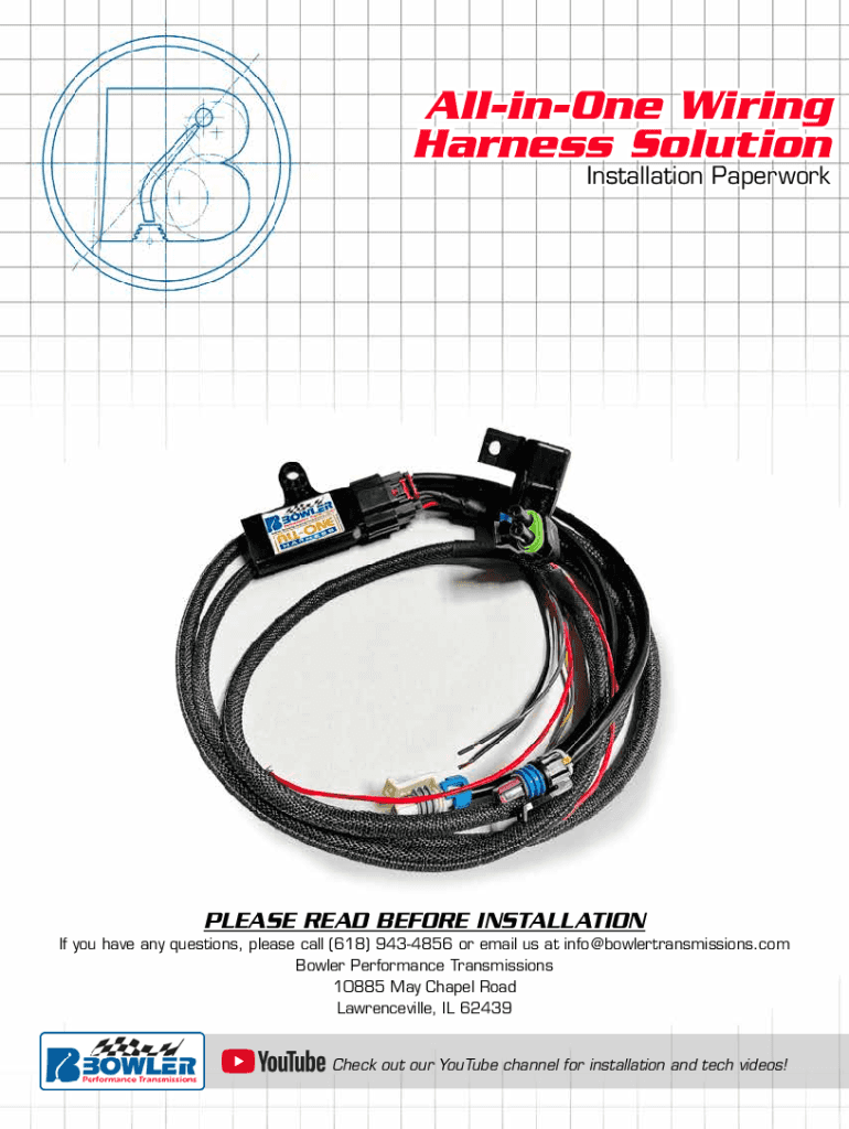 AllinOne Wiring Harness Solution Installation PaperworkPLEASE READ BEFORE INSTALLATION If you have any questions, please call (618) 9434856 or email us at info@bowlertransmissions.com Bowler Performance