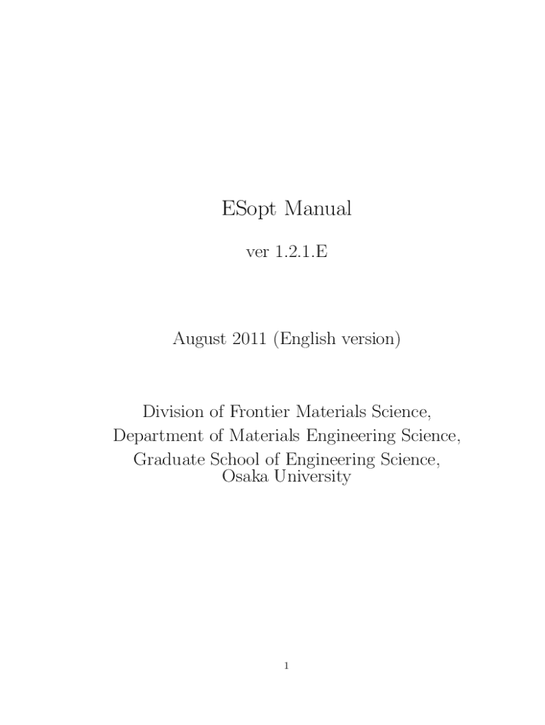 ESopt Manual ver 1.2.1.EAugust 2011 (English version)Division of Frontier Materials Science, Department of Materials Engineering Science, Graduate School of Engineering Science, Osaka University1ESopt