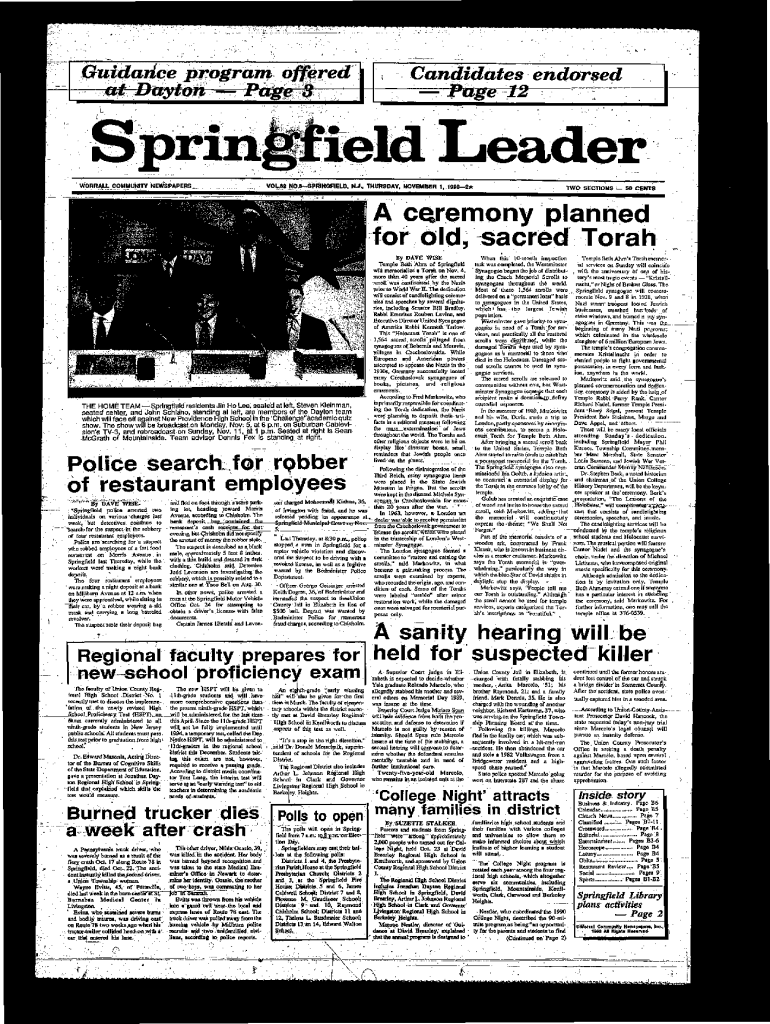 Guidance progrimp offgredWORRALL COMMUNITY NEWSPAPERSCandidates endorsed Page 12 VOL.62 NO.&SPRINGF1ELD, N.J., THURSDAY, NOVEMBER 1, 10002*TWO SECTIONS 50 CENTSA ceremony planned for old, sacred TorahTHE