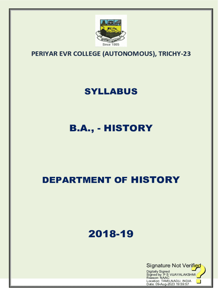PERIYAR EVR COLLEGE (AUTONOMOUS), TRICHY23SYLLABUSB.A., HISTORYDEPARTMENT OF HISTORY201819 Signature Not Verified Digitally Signed Signed by: P S VIJAYALAKSHMI Reason: NAAC Location: TAMILNADU, INDIA
