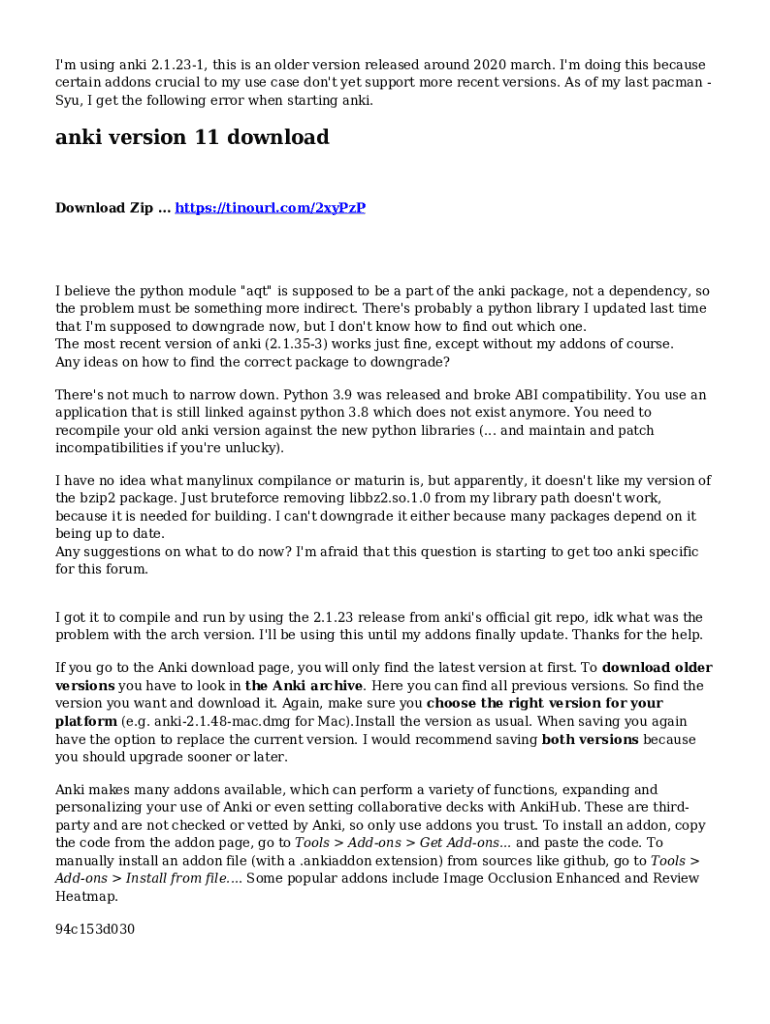 I\'m using anti 2.1.231, this is an older version released around 2020 march. I\'m doing this because certain add-ons crucial to my use case don\'t yet support more recent versions. As of my last