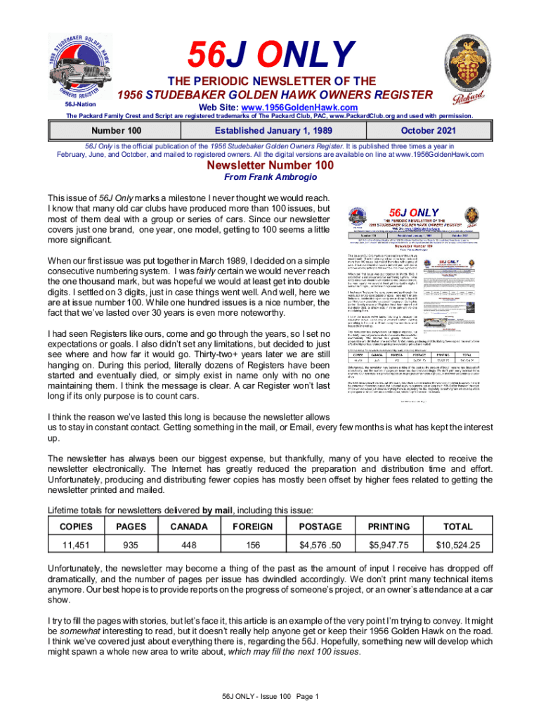 56J ONLY THE PERIODIC NEWSLETTER OF THE 1956 STUDEBAKER GOLDEN HAWK OWNERS REGISTER 56JNationWeb Site: www.1956GoldenHawk.comThe Packard Family Crest and Script are registered trademarks of The Packard