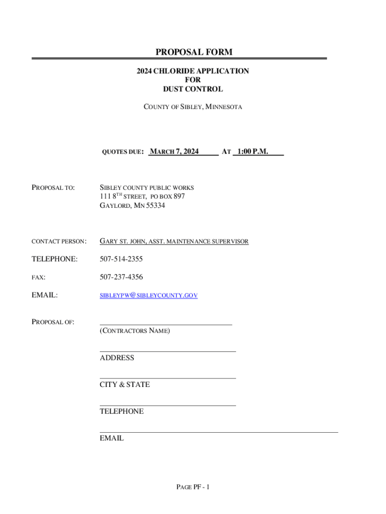 Get the free proposal form - 2024 chloride application for dust control county of ...