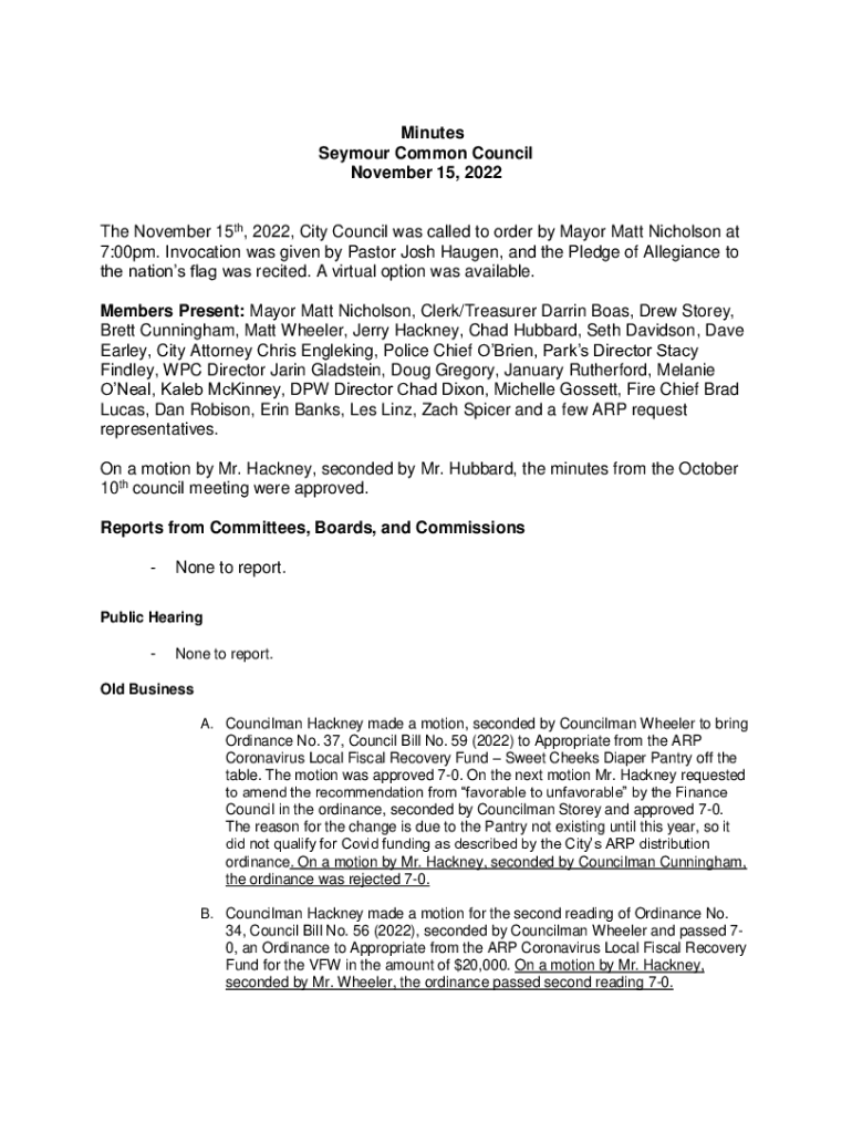 The November 15th, 2022, City Council was called to order by Mayor Matt Nicholson at