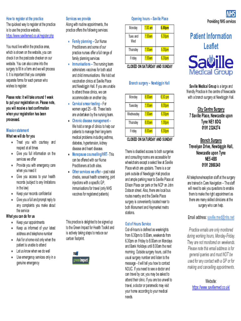 Get the free HomeSaville Medical Group - Saville Place and Trevelyan ...