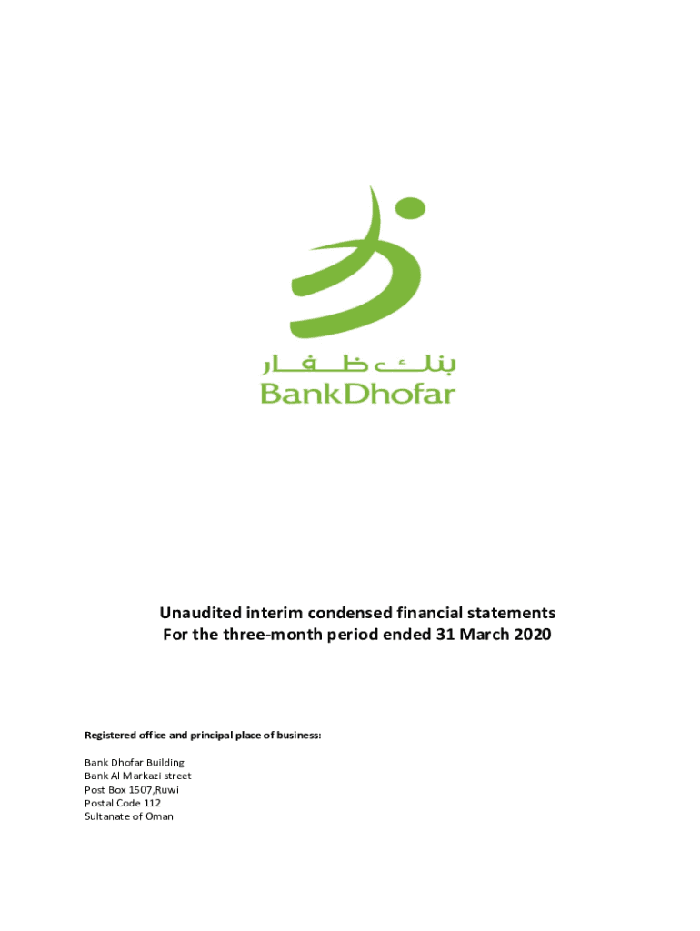 Unaudited interim condensed financial statements For the threemonth period ended 31 March 2020Registered office and principal place of business: Bank Dhofar Building Bank Al Markazi street Post Box