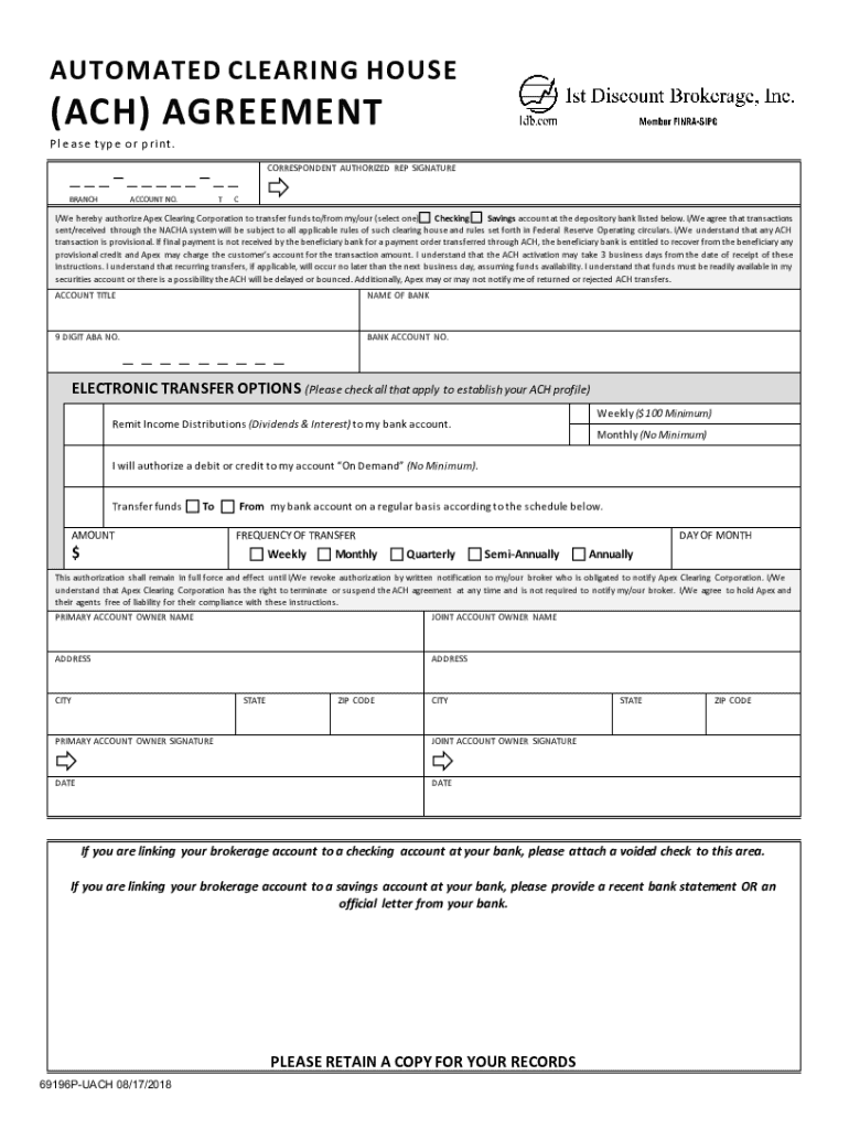 Organizations and individuals who participate in ACH transactions are required to file the ACH Definition Understanding Form.