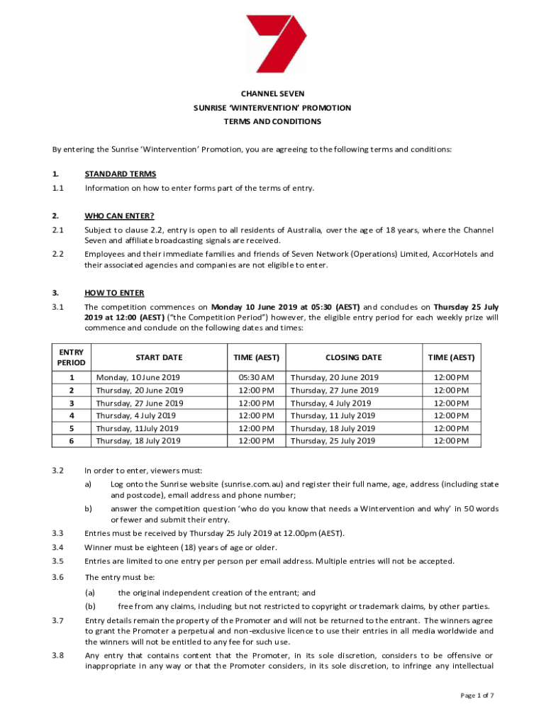 CHANNEL SEVEN SUNRISE WINTERVENTION PROMOTION TERMS AND CONDITIONS By entering the Sunrise Wintervention Promotion, you are agreeing to the following terms and conditions: 1.STANDARD TERMS1.1Information