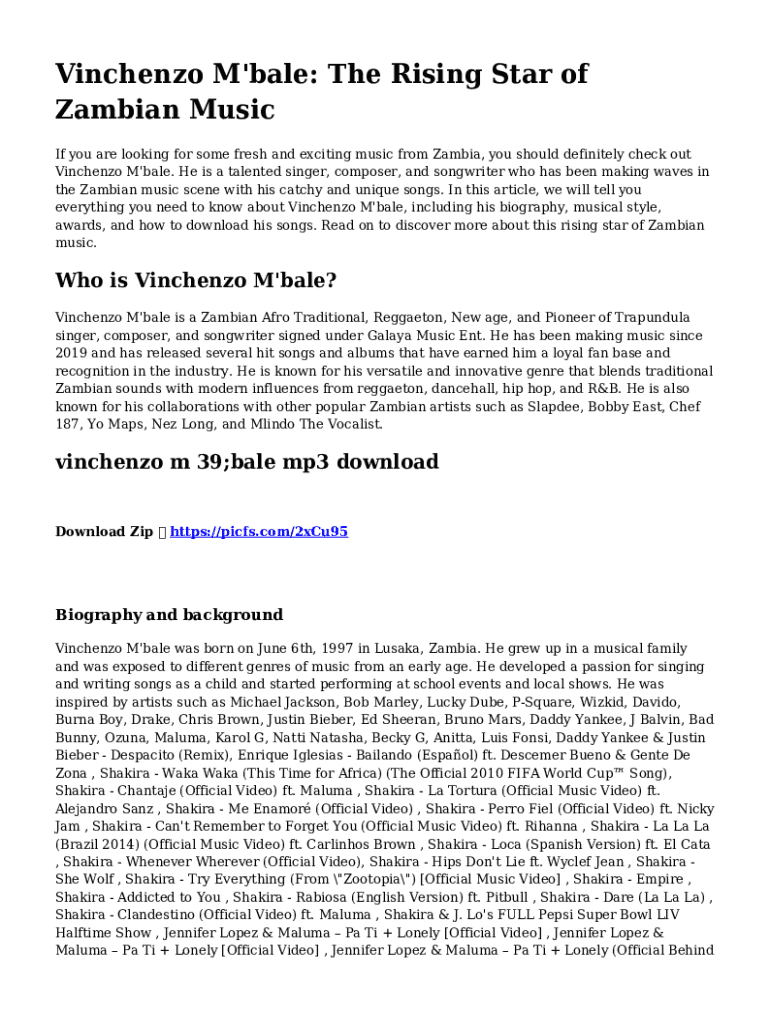 Vinchenzo M\'bale: The Rising Star of Zambian Music If you are looking for some fresh and exciting music from Zambia, you should definitely check out Vinchenzo M\'bale. He is a talented singer, composer,