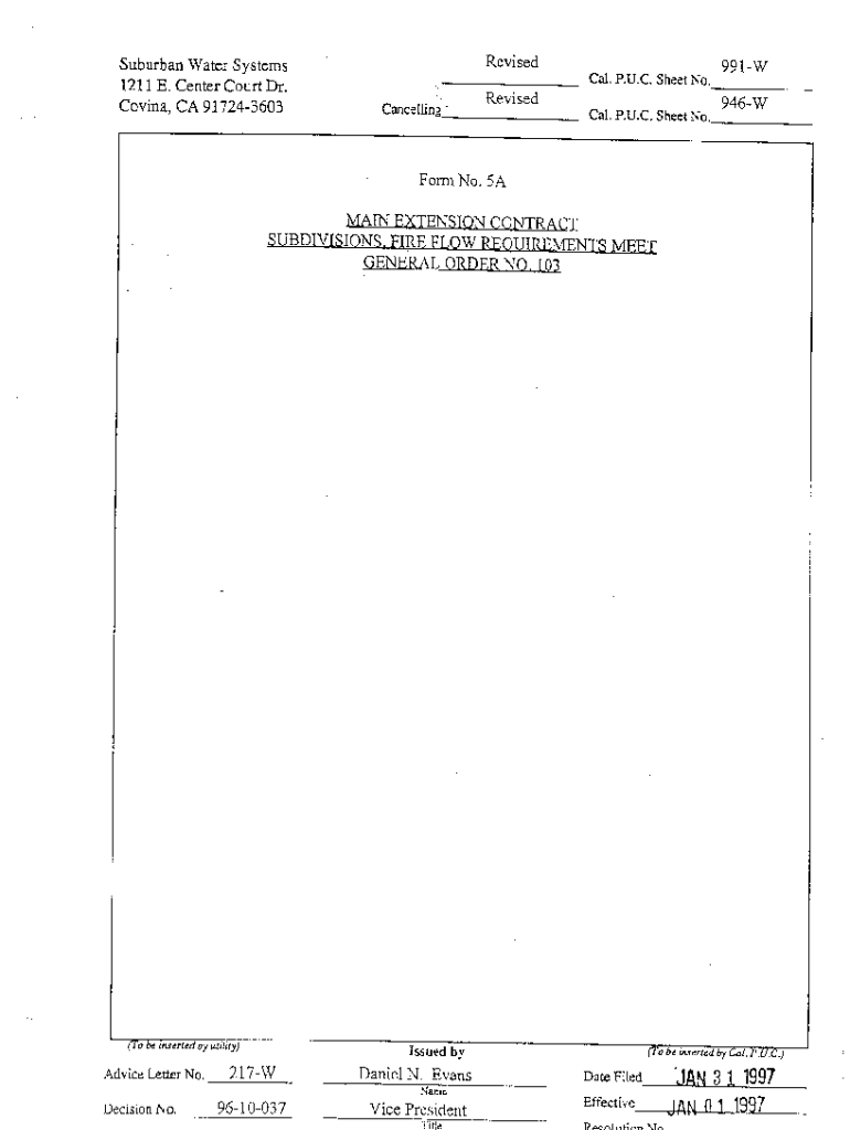 Suburban 1211 Covina,WaterE. Center CARevisedSystems CourtDr.917243603991W Cal. P.U.C. Sheet No.CancellingRevisedForm946W Cal. p.u.c.No.Sheet No.5AMATN EXTENSION CONTRACT SUBDMSIONS. FIRE FLOW REQUTREMENTSMF,F,T