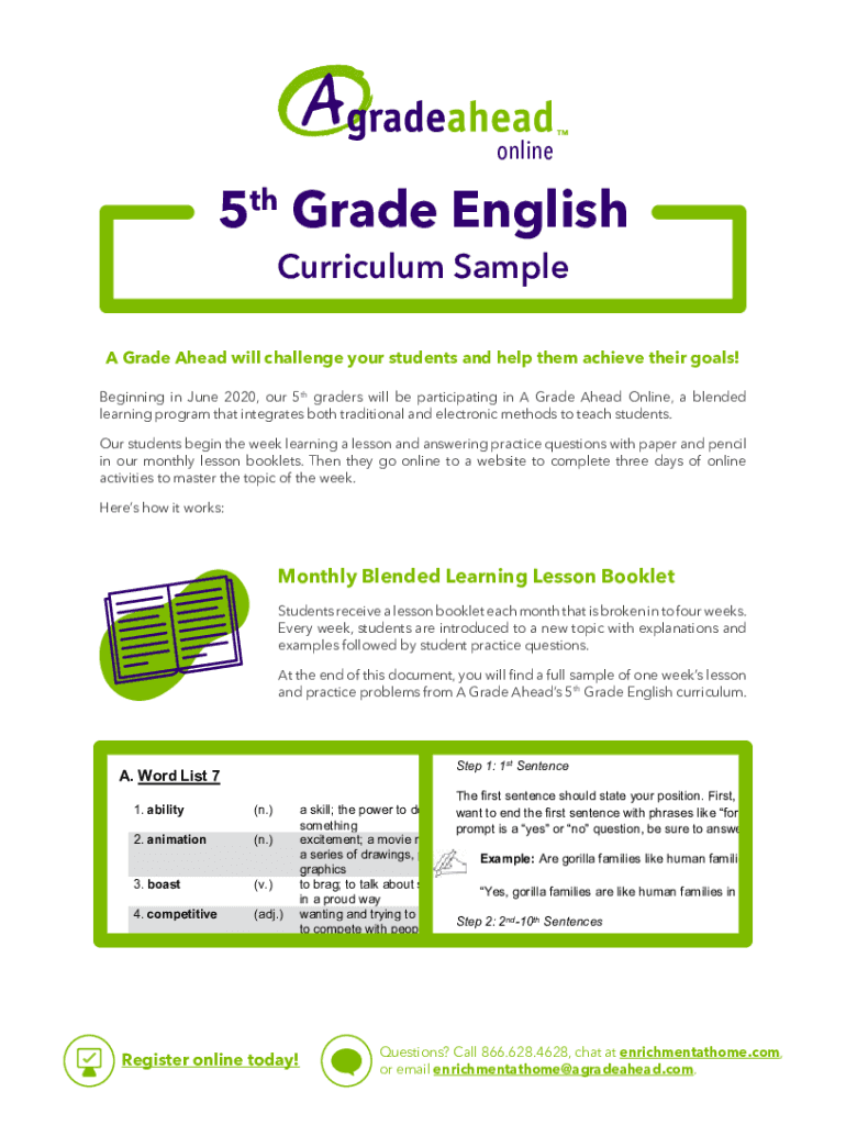 Curriculum Sample Grade Ahead will challenge your students and help them achieve their goals!