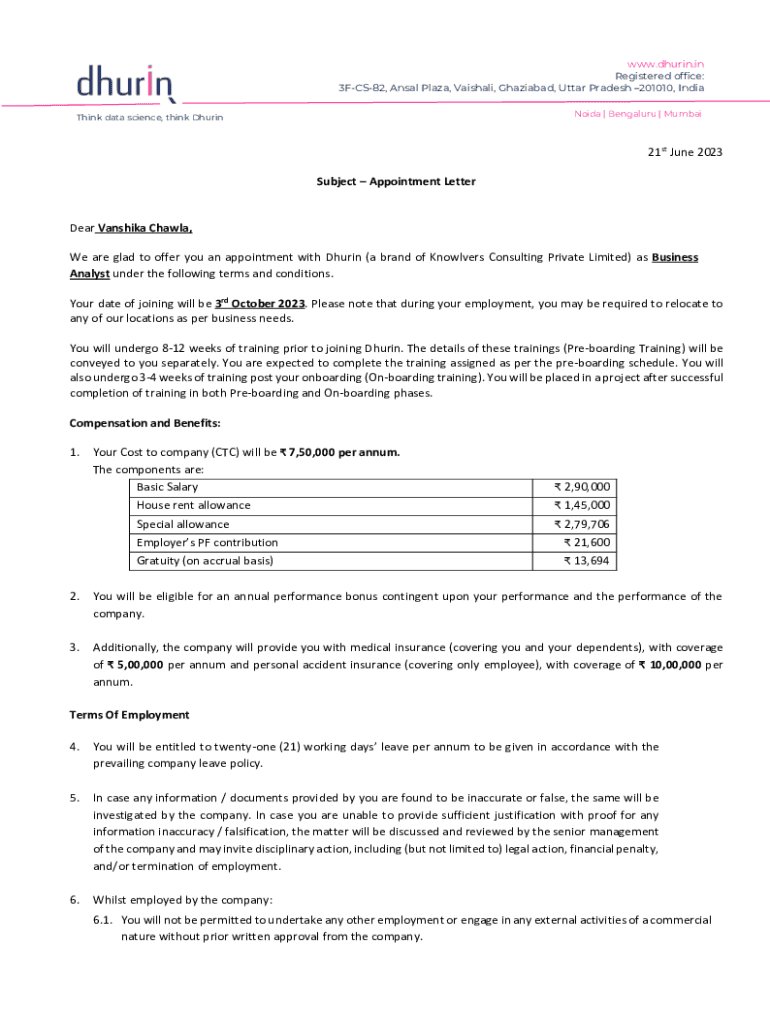 Get the free Appointment Letter - Vanshika Chawla.pdf