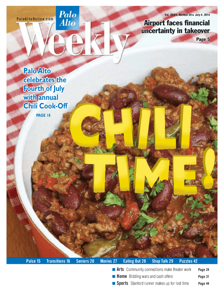 Vol. XXXV, Number 39 N July 4, 2014PaloAltoOnline.comAirport faces financial uncertainty in takeover Page 5Palo Alto celebrates the Fourth of July with annual Chili CookOff PAGE 18Pulse 15Transitions