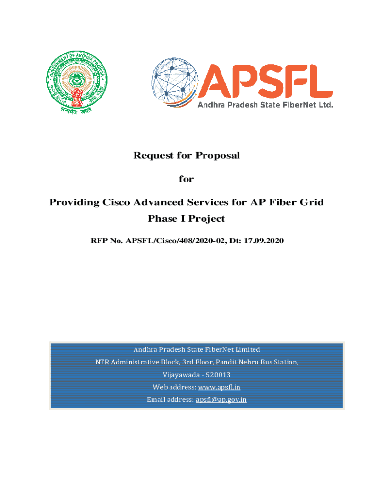 Request for Proposal for Providing Cisco Advanced Services for AP Fiber Grid Phase I Project RFP No. APSFL/Cisco/408/202002, Dt: 17.09.2020Andhra Pradesh State FiberNet Limited NTR Administrative