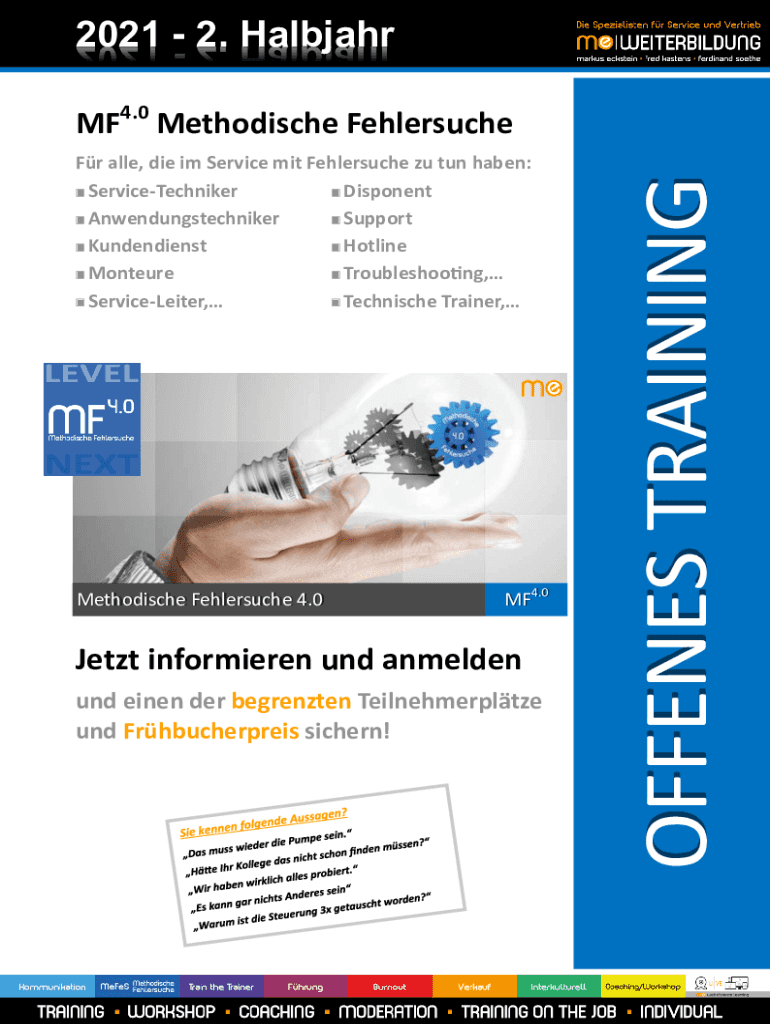 2021 2. HalbjahrFr alle, die im Service mit Fehlersuche zu tun haben: ServiceTechniker Disponent Anwendungstechniker Support Kundendienst Hotline Monteure Troubleshooting, ServiceLeiter, Technische