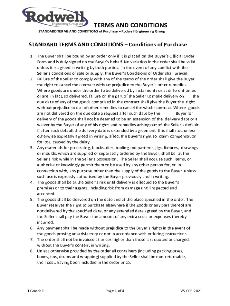 TERMS AND CONDITIONS STANDARD TERMS AND CONDITIONS of Purchase Rodwell Engineering GroupSTANDARD TERMS AND CONDITIONS Conditions of Purchase 1. The Buyer shall be bound by an order only if it is placed