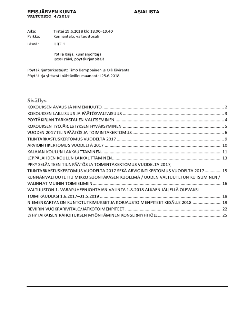 REISJRVEN KUNTAASIALISTAVALTUUSTO 4/2018Aika: