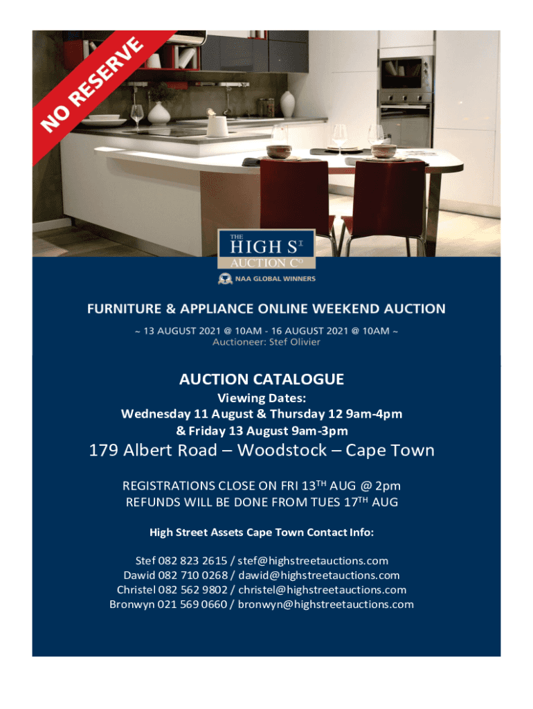 AUCTION CATALOGUE Viewing Dates: Wednesday 11 August & Thursday 12 9am4pm & Friday 13 August 9am3pm179 Albert Road Woodstock Cape Town REGISTRATIONS CLOSE ON FRI 13TH AUG @ 2pm REFUNDS WILL BE DONE