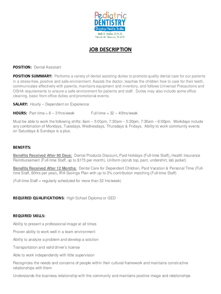 Fill out your dental assistant job description online with pdfFiller!