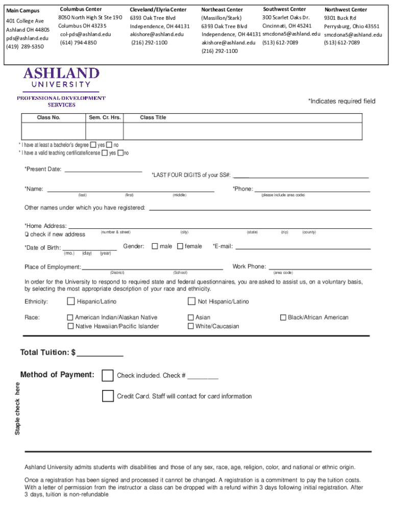 MainCampus 401 College Ave Ashland OH44805 pds@ashland.edu (419) 2895350SouthwestCenter Cleveland/ElyriaCenter Northeast Center 300ScarletOaksDr. 6393 Oak Tree Blvd (Massillon/Stark) Cincinnati,OH45241