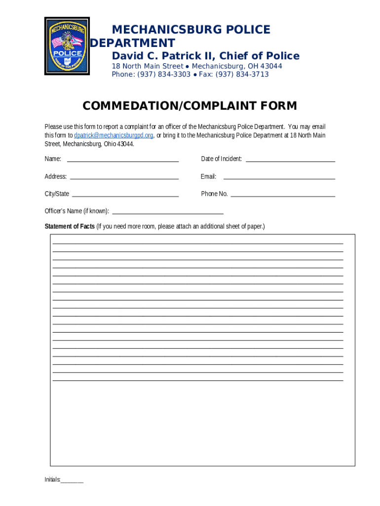 How to fill COMMEDATION/COMPLAINT word template